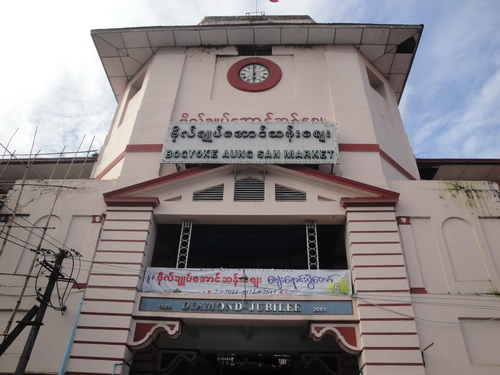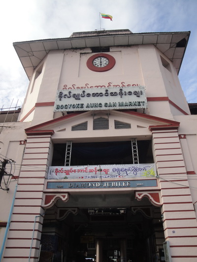 ป้ายชื่อภาษาอังกฤษ คือ BOGYOKE AUNG SAN MARKET