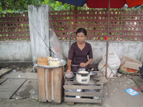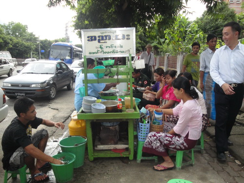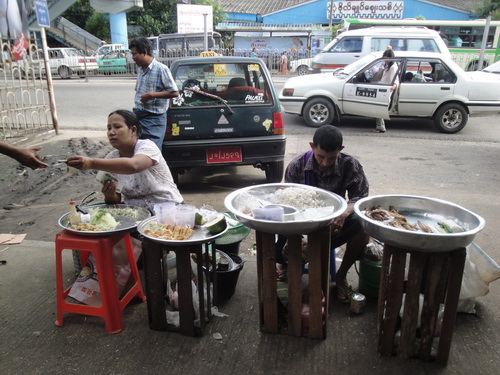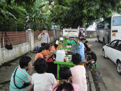 9665. ขนมเส้นเมียนมาร์ เจ้านี้น่าจะอร่อย เห็นมีลูกค้าอุ่นหนาฝาคั่ง (คับคั่ง)