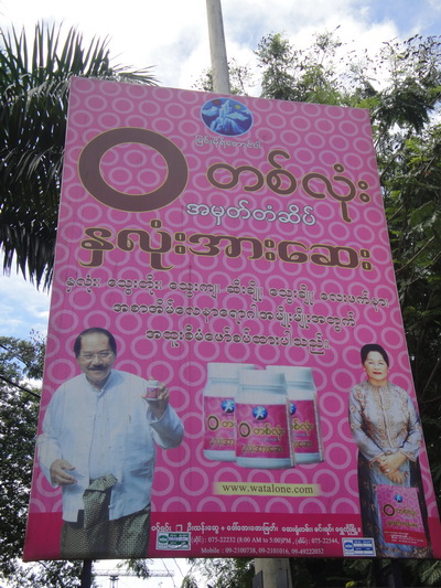 9643. นี่คือ หนึ่งในป้ายโฆษณาสินค้าที่มีจำนวนมากมายในนครย่างกุ้ง