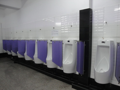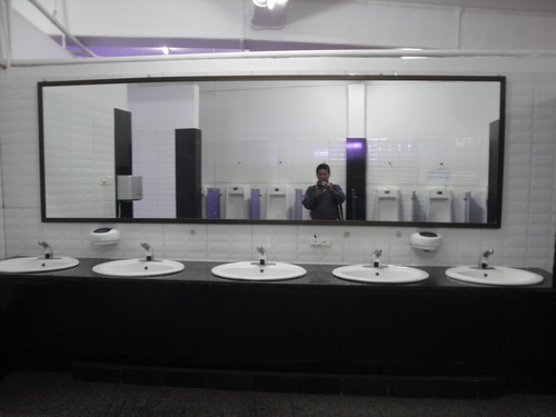 9649. ห้องน้ำสุภาพบุรุษ ในห้างสรรพสินค้า TAW WIN CENTRE นครย่างกุ้ง สหภาพเมียนมาร์ สะอาด และ ใช้ระบบเซนเซอร์ ด้วยครับ ฉี่เฉียงๆ เสร็จแล้ว ไม่ต้องกดน้ำ