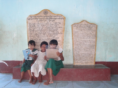 0348. เด็กหญิง ชาวเมียนมาร์ นั่งเล่นอยู่หน้า คำจารึก พระเจ้ามนูหะ (King Manuha)