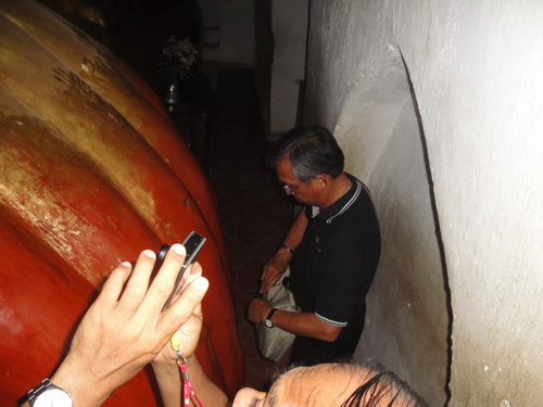 ... หากเดินเข้าไปตามช่องว่างระหว่างวิหารกับพระพุทธรูป จะพบกับพระพุทธรูปปางไสยาสน์อีก 2 องค์ ซึ่งก็ขนาดใหญ่โตจนทำให้วิหารคับแคบลงไปถนัดตาเช่นกัน