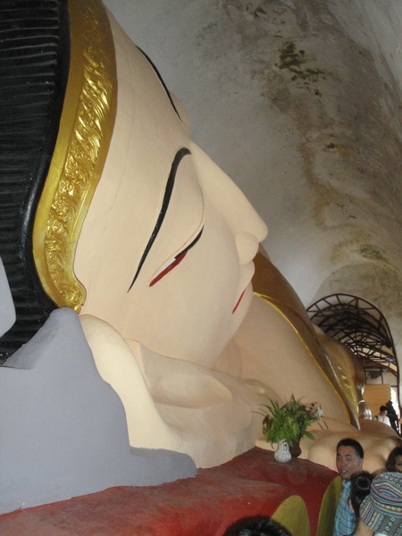 Manuha Temple (Burmese: မနူဟာဘုရား) is a Buddhist temple built in Myinkaba (located near Bagan), by captive Mon King Manuha in 1067, according to King Manuha's inscriptions. It is a rectangular building of two storeys. The building contains three images of seated Buddhas and an image of Buddha entering Nirvana. Manuha Temple is one of the oldest temples in Bagan.
