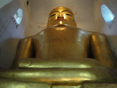 ... ภายในพระวิหาร ประดิษฐานพระพุทธรูปอยู่ 3 องค์ ซึ่งองค์พระพุทธรูปนั้นมีขนาดมโหฬาร บริเวณ"พระอุระ" ของพระพุทธรูปมีขนาดโตพองจนรู้สึกได้ถึงความอึดอัดที่ทับถมในจิตใจของพระองค์ (พระเจ้ามนูหะ(King Manuha) กษัตริย์มอญที่ถูกจับตัวมาเป็นเชลยศักดิ์อยู่ที่เมืองพุกามพร้อมมเหสี )