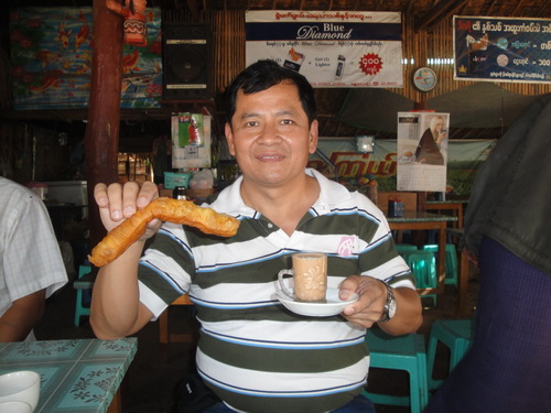 คุณ สำราญ ห่านแก้ว รับประทานกาแฟ และ ปาท่องโก๋ เมียนมาร์