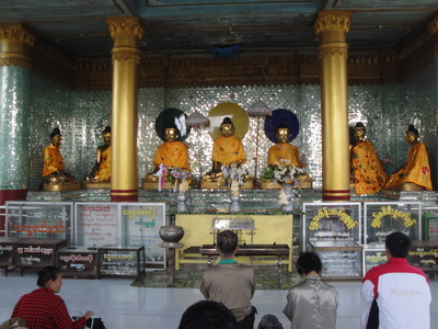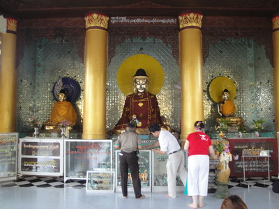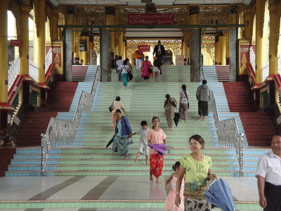 ถ้าคณะเรามาช้าอีกประมาณสัก 1-2 สัปดาห์เราก็คงจะไม่ได้เห็นความงานขององค์พระเจดีย์ แต่จะเห็นร้านไม้ไผ่สำหรับการบูรณะพระเจดีย์เต็มไปหมด ไกด์บอกว่าจะมีการบูรณะทุกๆ 4-5 ปี ใช้เวลาในการบูรณะประมาณ 1 ปี แล้วจะมีการเฉลิมฉลอง....