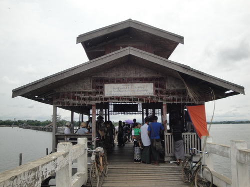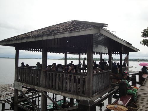 0750. ศาลากลางทาง บน สะพานอูเบ็ง ( U Bein's Bridge) บน ทะเลสาบตองตามัน( Taungthaman Lake )