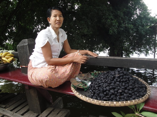 0722. แม่ค้าสาวชาวเมียนมาร์ ขาย "กระจับ" บนสะพานอูเบ็ง