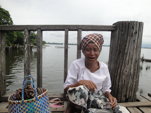 0726. แม่ค้าชาวเมียนมาร์ ขาย "สินค้า" บนสะพานอูเบ็ง