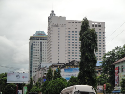 3924. ตึก TRADERS HOTEL และ ตึก HITACHI สูงเด่นเป็นสง่าอยู่กลางนครย่างกุ้ง แห่ง สภาพเมียนมาร์