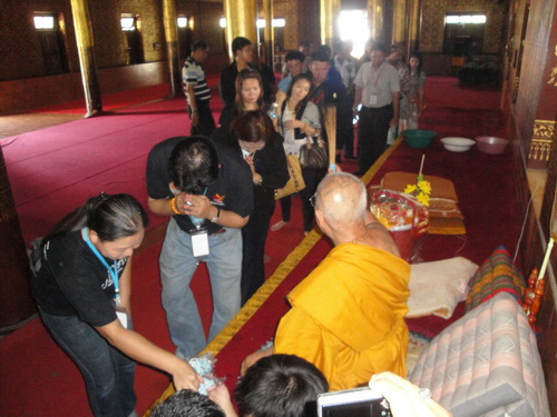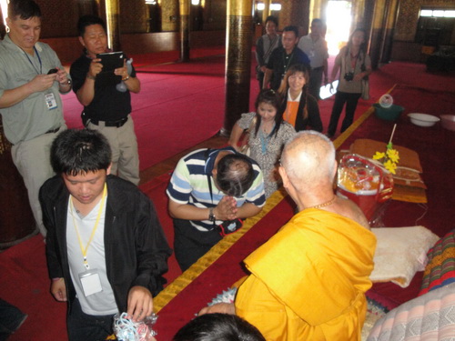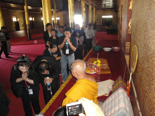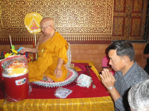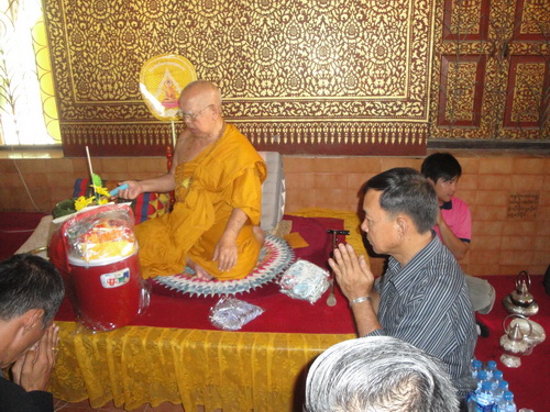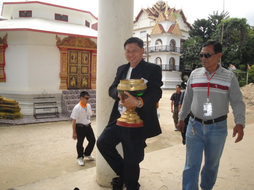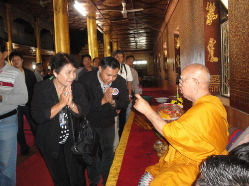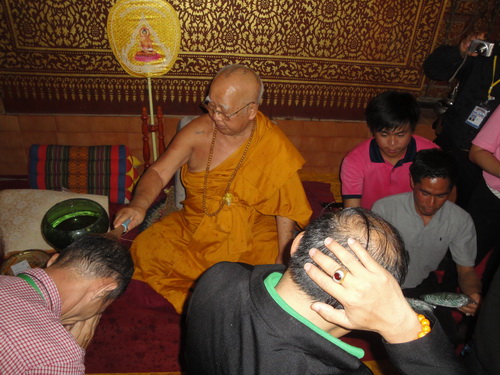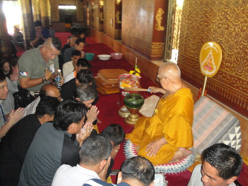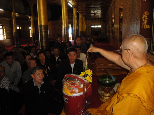 8230. พระรัตนรังษี หรือ พระครูบาแสงหล้า ธมฺมสิริ เจ้าอาวาสวัดพระธาตุสายเมือง เวียงท่าขี้เหล็ก สหภาพเมียนมาร์ ประพรมน้ำมนต์เพื่อเป็นศิริมงคลแก่ คณะ พคบ.301